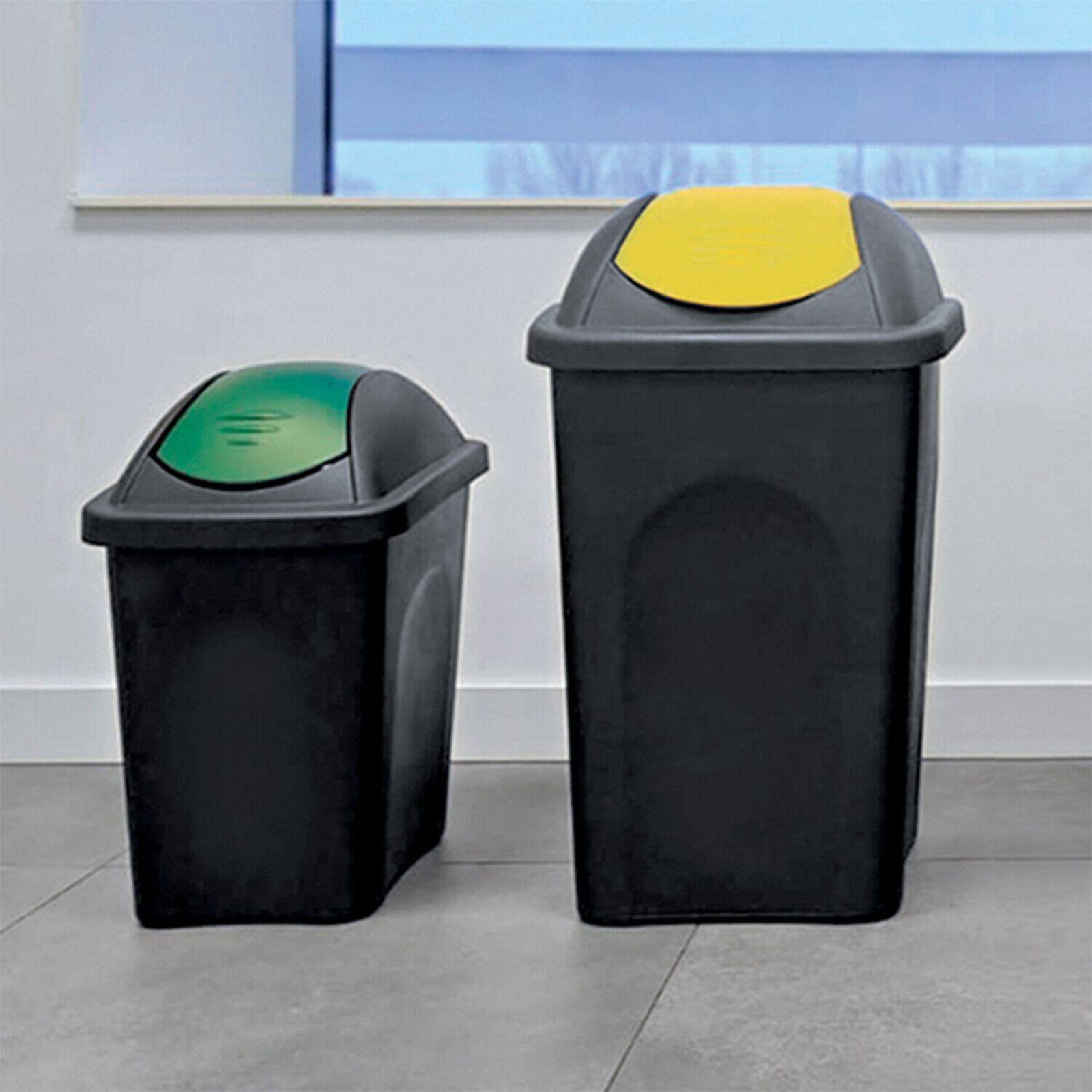 Ideale per la raccolta differenziata domestica e per punti di raccolta in uffici, negozi o locali pubblici. Scegli il colore del coperchio per facilitare la separazione dei rifiuti (vetro, plastica, umido, indifferenziato). Grazie al coperchio basculante si riducono gli odori e si mantiene l’igiene in cucina.