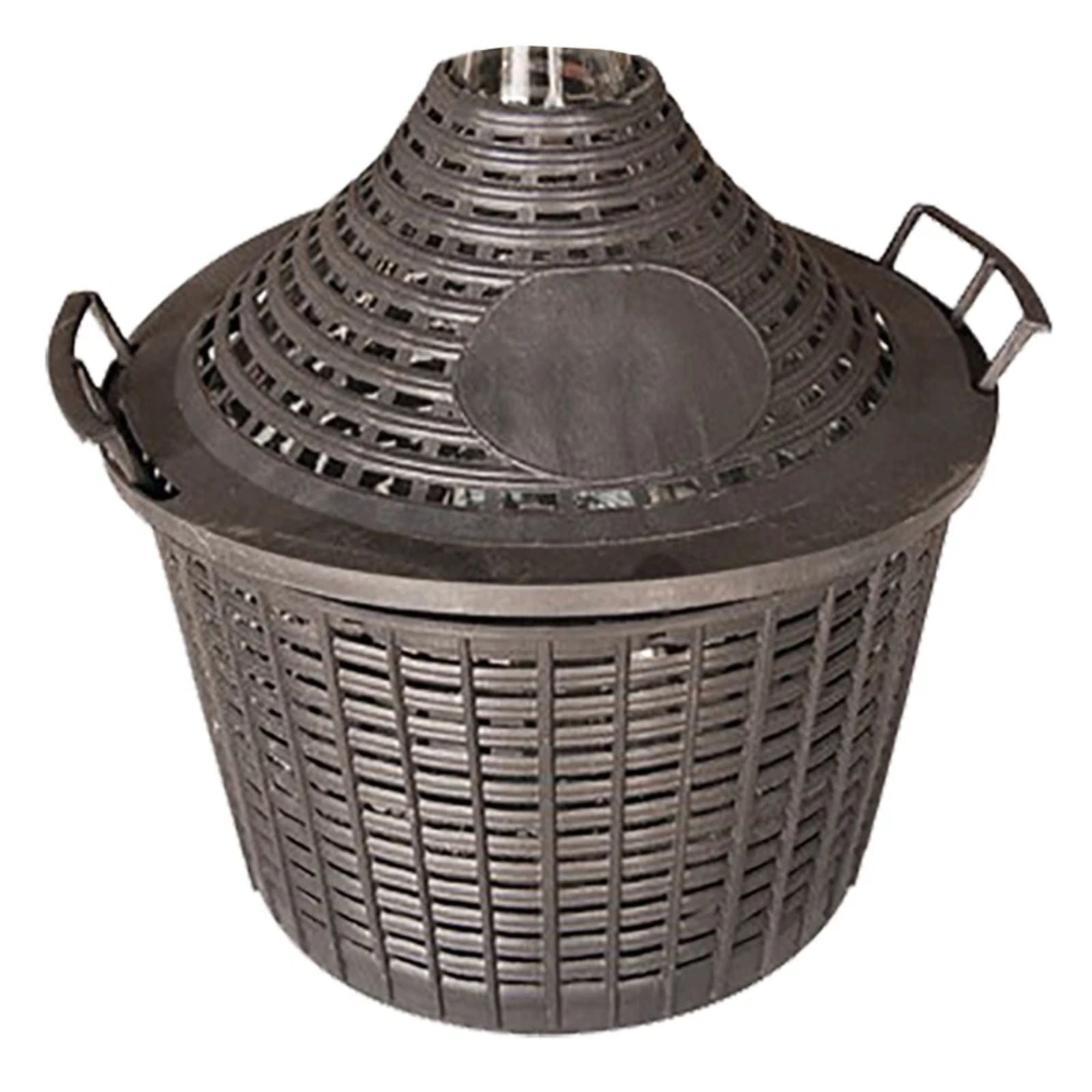 Proteggi le tue damigiane in modo sicuro e pratico con il LoviStore Cesto Copridamigiana Traforato da 10 litri. Realizzato in plastica resistente, è progettato per modelli a bocca stretta ed è composto da due parti: una sezione inferiore che avvolge saldamente la base e il corpo della damigiana, e una parte superiore con cappuccio, facile da montare e rimuovere.