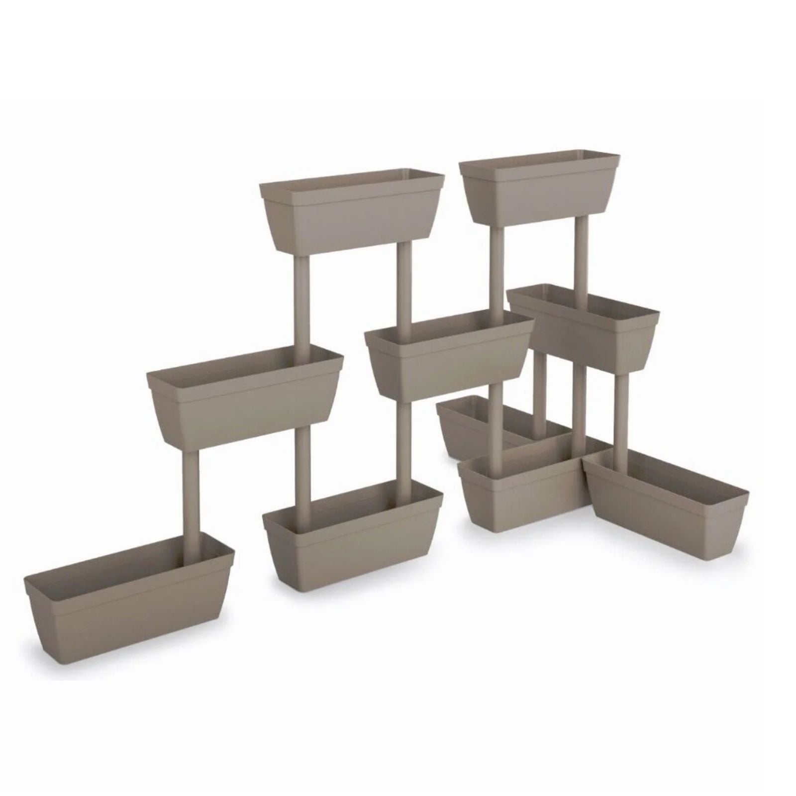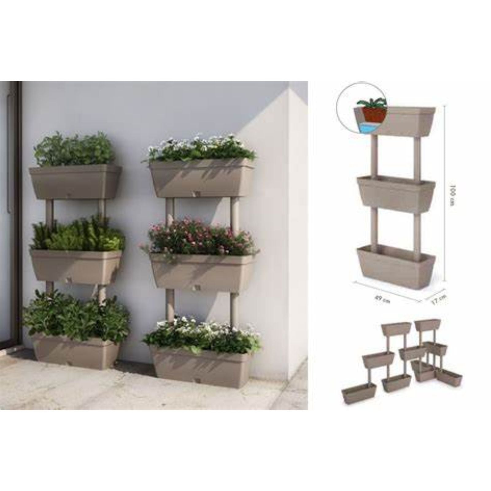 L’ingombro totale della composizione verticale è di 50x17x100 cm, un formato compatto e armonioso, ideale per chi cerca una soluzione verde anche in spazi ridotti. Facili da montare, leggere ma robuste, queste fioriere sono perfette per ospitare fiori, piante aromatiche, piante grasse o ornamentali.